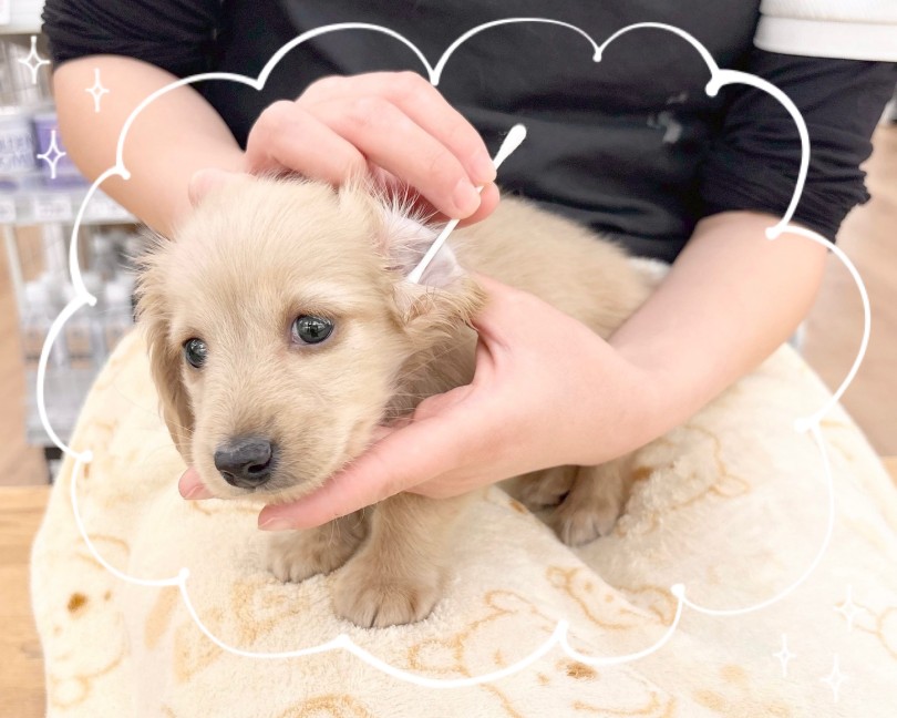 垂れ耳の犬種のエチケットである耳掃除!もちろんダッちゃんも履修済みです。