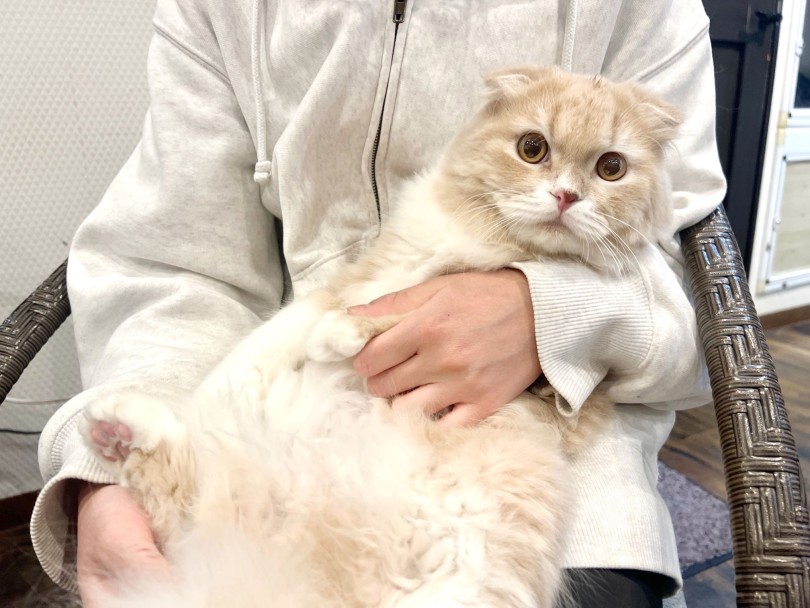スコティッシュフォールドは、丸いお顔と優しい表情が魅力の猫種です。
