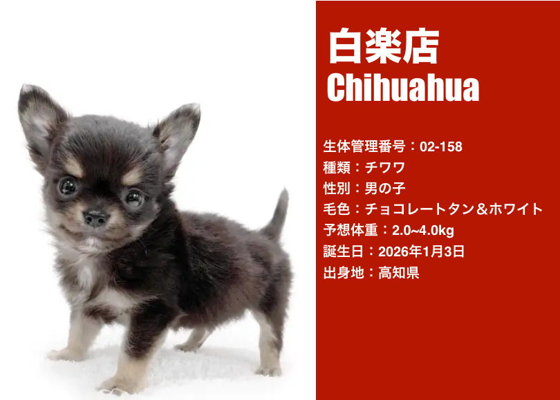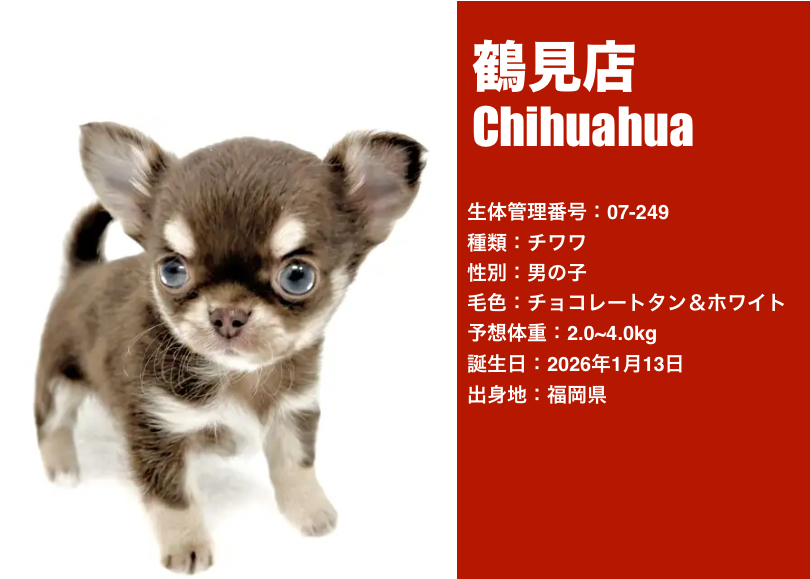 チョコレートタン&ホワイトのチワワくんを、改めてご紹介いたします。