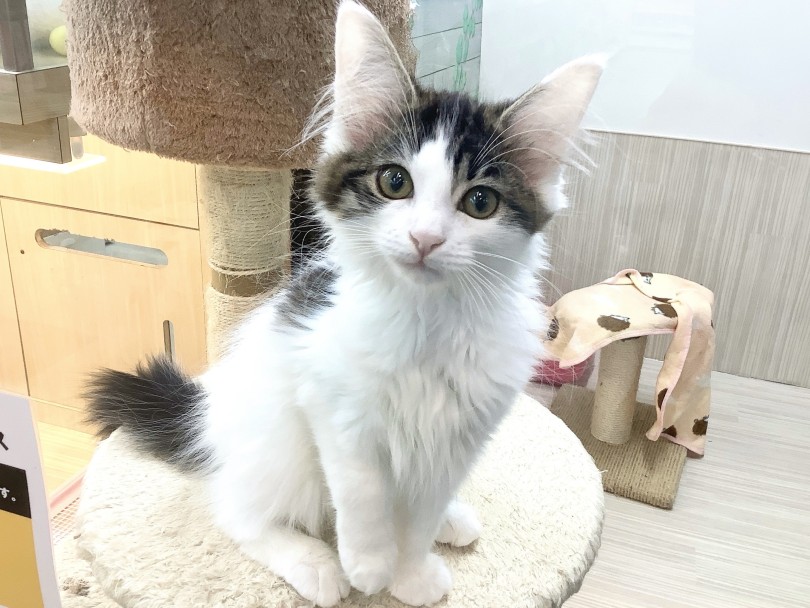 この子の最大の魅力は、なんといっても甘えん坊な性格です♡スタッフが近づくと、まっすぐ目を見つめながら「なー」と甘えた声で鳴くんです!