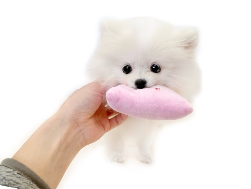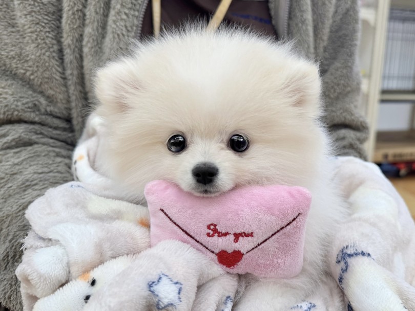 デビュー当初も新しい環境に動じることのなかったポメちゃん。入店から1ヶ月が経った現在は当初よりももっと時間の使い方が豊かになり、最近ではおもちゃをお口にくわえて遊ぶのがマイブーム!
