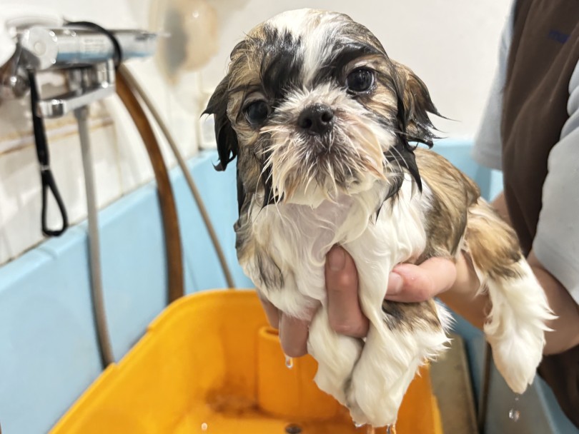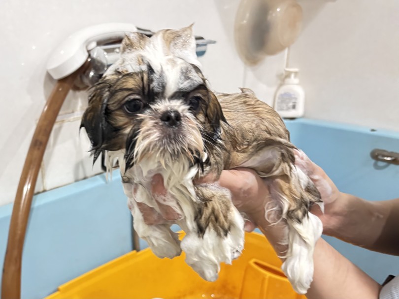 【 シーズー 】ほのぼのスイッチ全開!初めてのシャンプー体験!