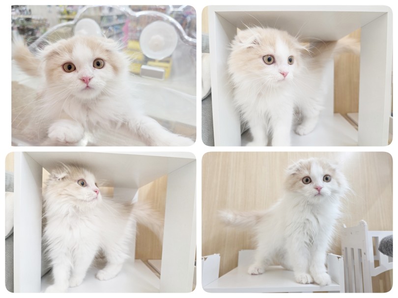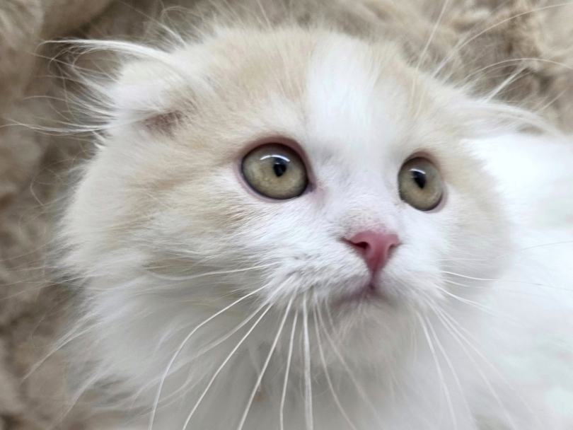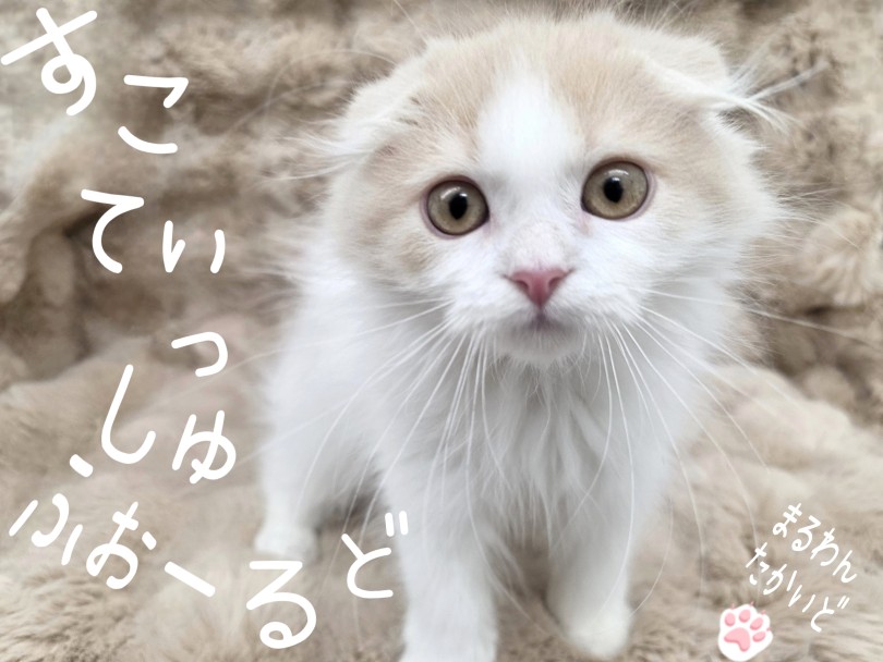 クリーム&ホワイトの"スコティッシュフォールド"ちゃんが、杉並区のペットショップマルワン高井戸店にやってきました。