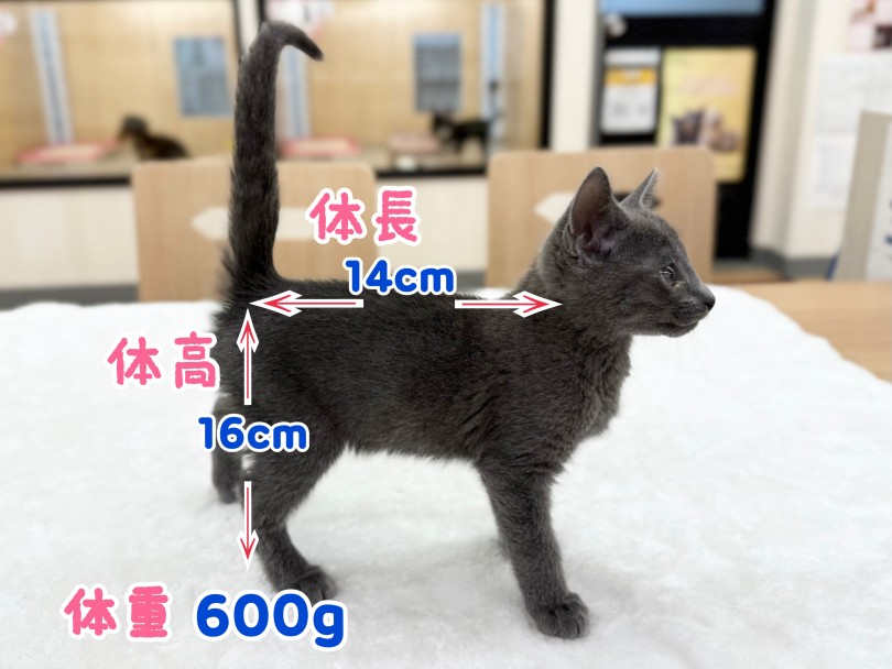 尻尾には子猫特有のゴーストタビーと呼ばれる縞模様が薄っすらとあります。