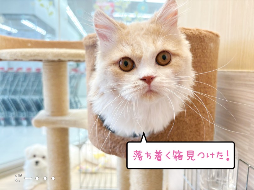 お部屋の中を探検して、落ち着く箱見つけて休憩だ!