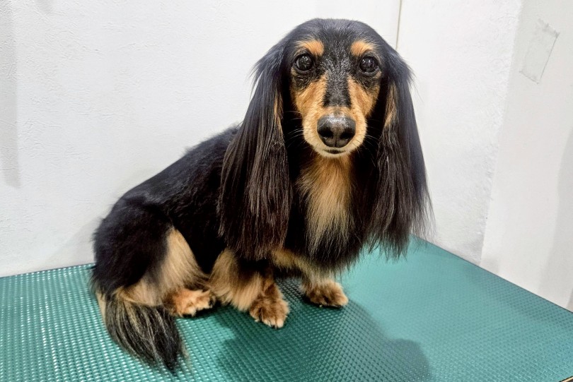 スタッフの愛犬ダツちゃん(カニヘンダックスフント)に協力してもらいました。シニアの子で、毛量がやや少なく、被毛も細くなってきている状態です。