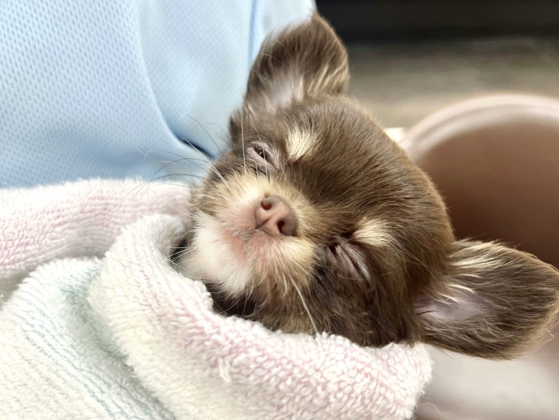 今回ご紹介するのはマルワンプレミアムの称号を持つ、大人気チョコタンカラーのミニミニサイズチワワちゃんです♡