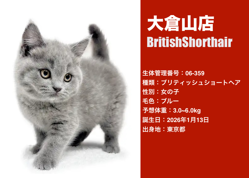 少し大きくなってさらに可愛さが増したブリティッシュちゃんにぜひ会いに来てくださいね!