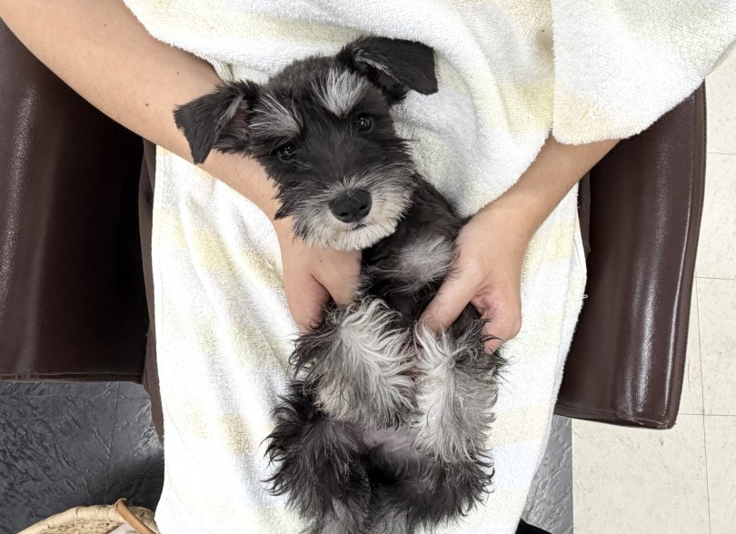 今回はもうすぐ4か月を迎えるミニチュアシュナウザーちゃんをご紹介!