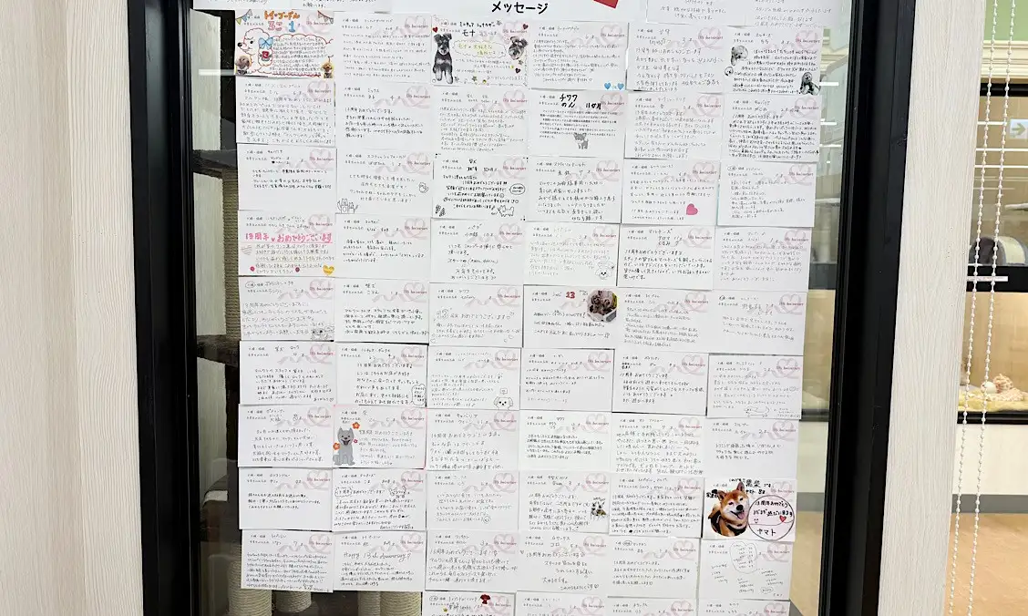 卒業生だけでなく、オーナーさまにとっても「実家」の立ち位置でありたいとお店づくりをしていますが、「こんな事できたよ!」「この子と一緒で楽しかった!」というお話を聞かせて頂いたり、元気で可愛いくなった姿に会えるのが我々の最大の楽しみになっております。