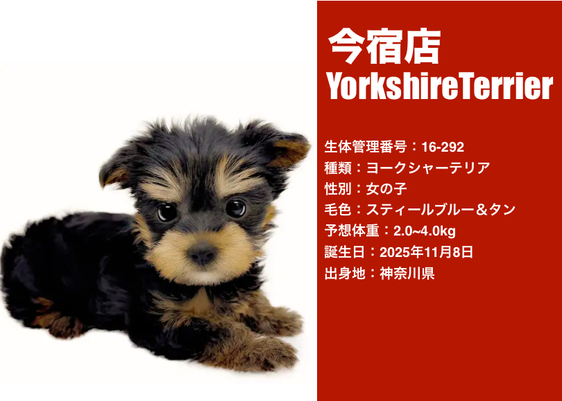 2026年1月8日現在ペットショップマルワン全店に在店中のヨークシャーテリアちゃんをご紹介します!