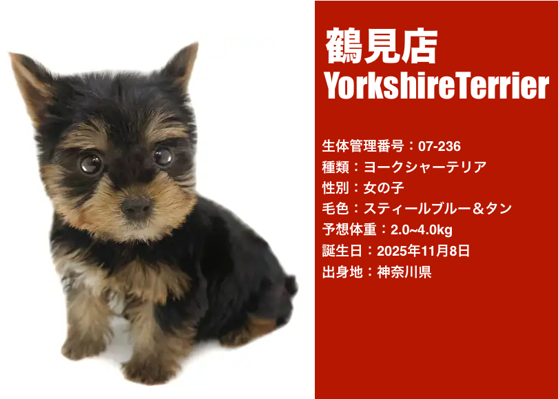 マルワン横浜鶴見店に、ヨークシャテリアの女の子が入店しました。