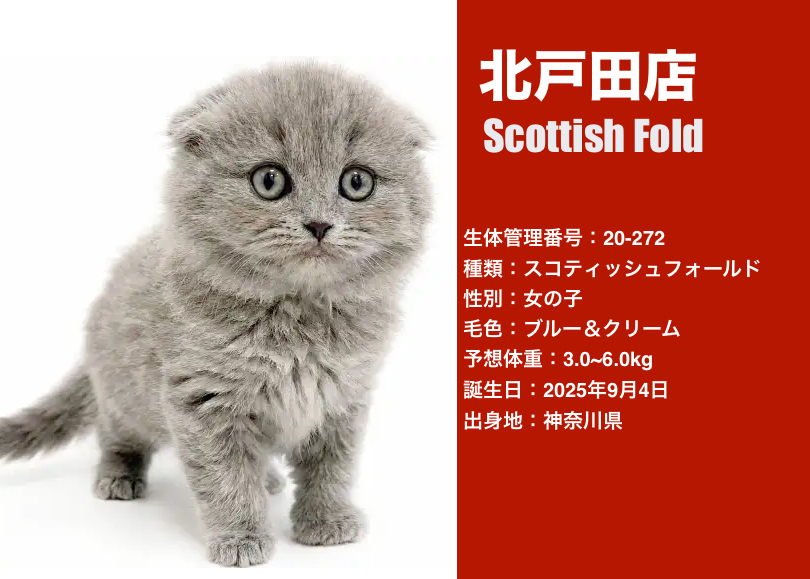 2025年12月25日現在ペットショップマルワン全店に在店中のスコティッシュフォールドちゃんをご紹介します!