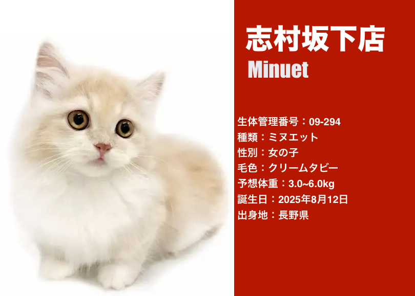 穏やかな猫ちゃんとのまったりライフを夢見ている方、是非東川口店のミヌちゃんと素敵な生活を送ってみませんか?
