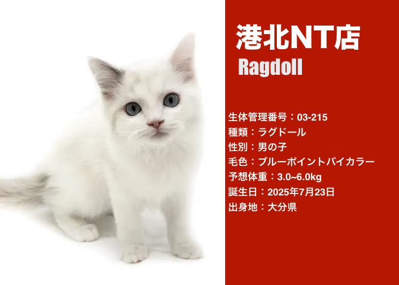 ぜひ、美しく甘えん坊なラグドールくんにマルワン横浜港北NT店まで会いに来てください♪