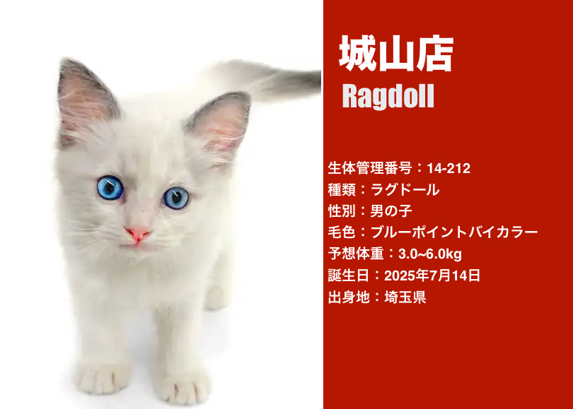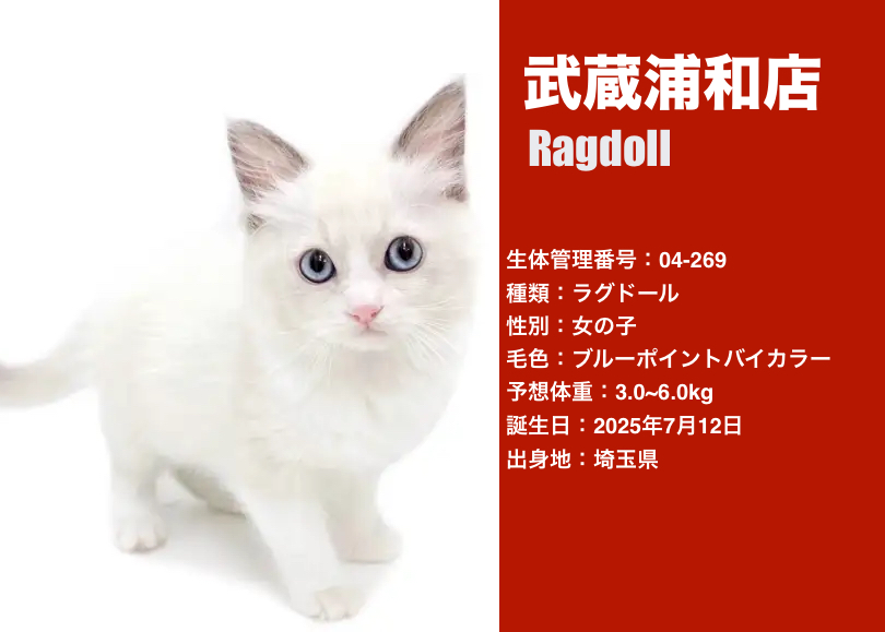 2025年11月13日現在ペットショップマルワン全店に在店中のラグドールをご紹介します!