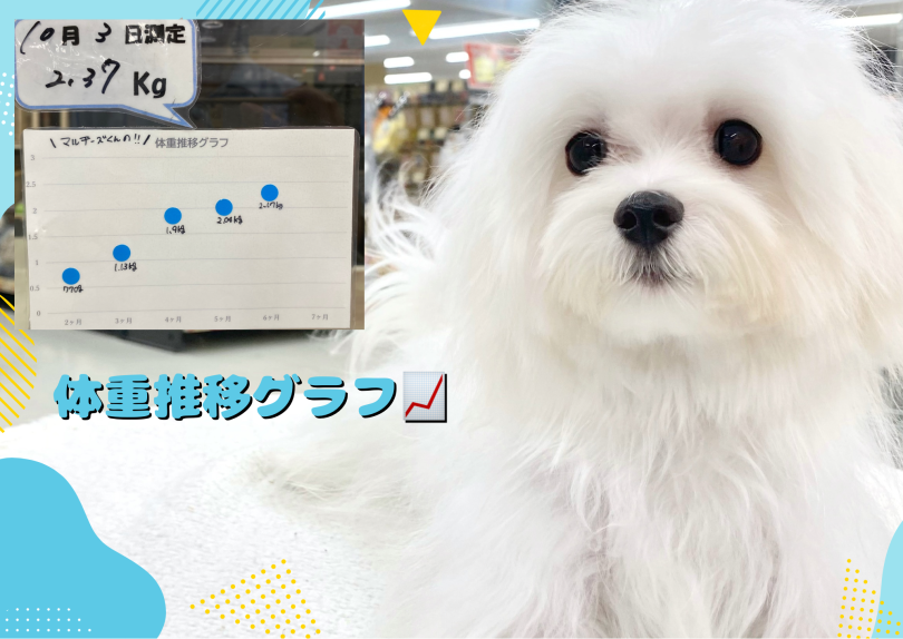 両親ともに3kg未満という理想的な小柄体型のため、成犬時も3kg台前半程度に収まりそうです!