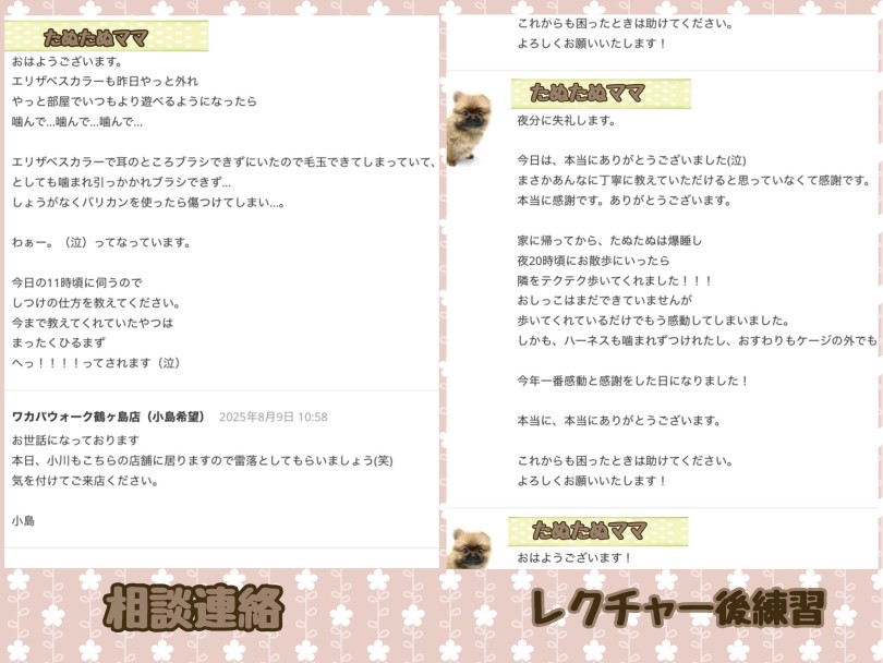 お店でのレクチャー後にたぬたぬちゃんのママから嬉しいお言葉をいただけました。