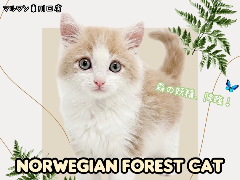 埼玉県川口市のペットショップ マルワン東川口店より最新子猫情報です!ボリューム感のある被毛、凛とした品のある顔立ち、温厚で人懐っこい性格など、洋猫らしい沢山の魅力で近年日本でも注目度が急上昇している「ノルウェージャンフォレストキャット」の男の子が仲間入りしました!