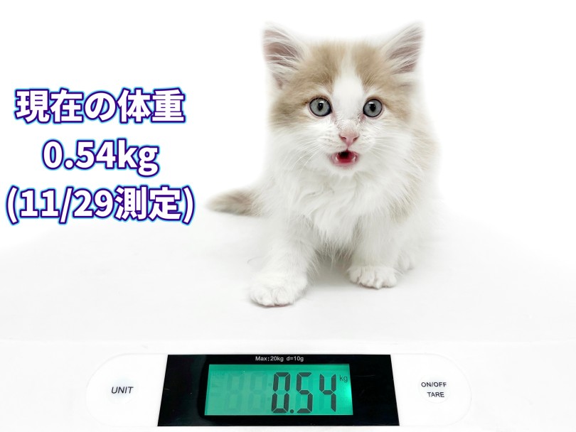 生後2ヵ月の現在の体重は0.54kg(11/29測定)