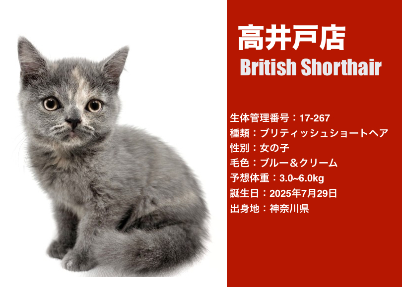全店舗に在店中のブリティッシュショートヘアちゃんをご紹介いたしました♪