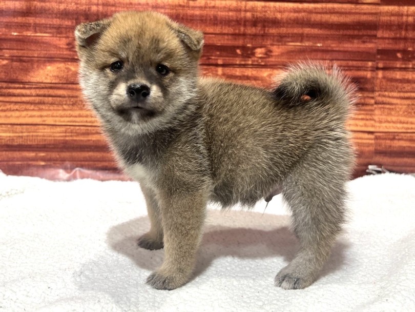 体はまだとってもコンパクトですが、立ち姿や表情の端々に柴犬らしい落ち着きも垣間見えるところがポイント。