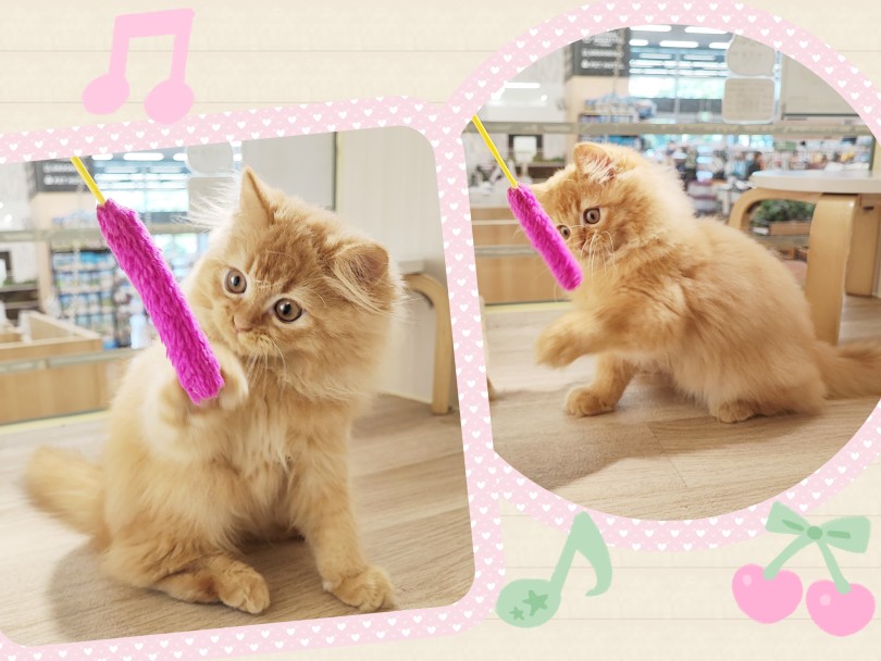 おもちゃへの反応も抜群で猫じゃらしを振ってあげると夢中で追いかけ始めました!