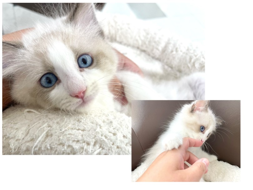 シャム猫やラグドールように顔・耳・足・尻尾にポイントカラーが入った猫ちゃんです。