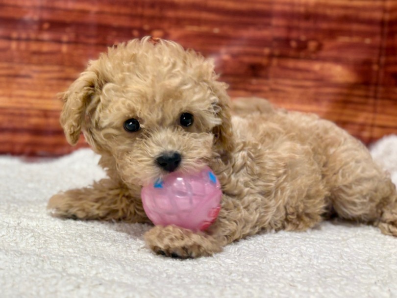 まん丸の瞳と短めのマズルが作り出すベビーフェイスは見ているだけで自然と笑顔になります。毛質はマルチーズ由来の柔らかさとトイプードル由来の緩やかなカールが合わさったボリュームたっぷりの被毛。