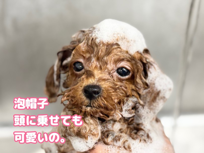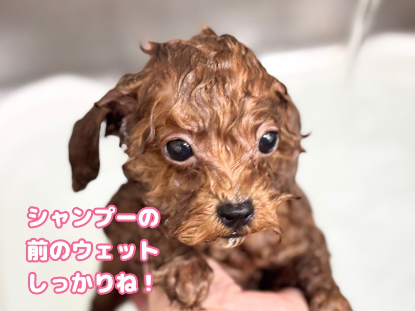 子犬ちゃん用の刺激の少ないシャンプーを使ってあげますよ!