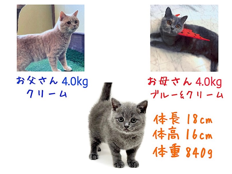成猫時は両親と同じぐらいの4.0kg前後と予測しています。