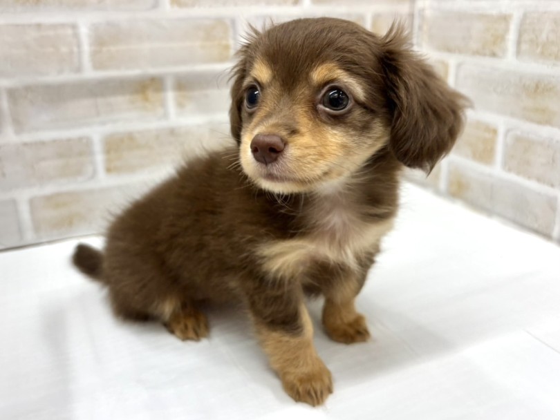 大人気犬種チワワとダックスの良いところを受け継いだルックス・甘えん坊で人懐っこい性格・チョコタンカラーの美貌。