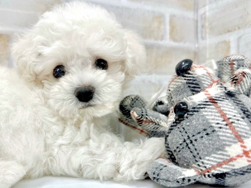 更には、ビションフリーゼのフワフワな被毛が丸っこさが、あどけない愛らしさを演出してくれます。