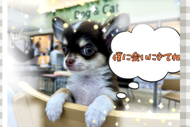 ガラス越しに目が合うと、全力でアピールしてくれる愛嬌たっぷりのチワワくん♡