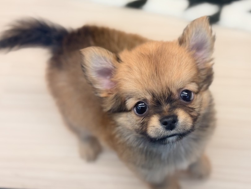 超爆毛のレッドコートとドワーフ体型の癒し系! レッドチワワちゃまの最大の魅力は、ポメラニアンに間違えてしまうほどの爆毛!