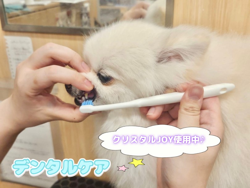当店では、アニコムグループとアース製薬が共同開発した【クリスタルジョイ】の歯磨き粉を使用したデンタルケアのオプションもご利用可能となっております!うみちゃんも今回クリスタルジョイを使用中です♪