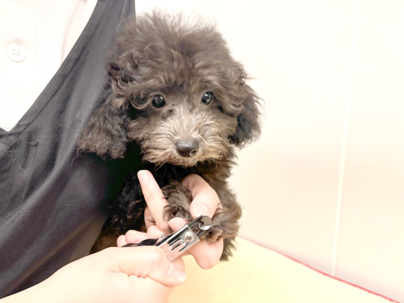 お店に来てから勉強頑張っているトイプーちゃんの成果はお手入れ習得・・・ブラッシングや爪切り、耳掃除もとっても上手に行えます!