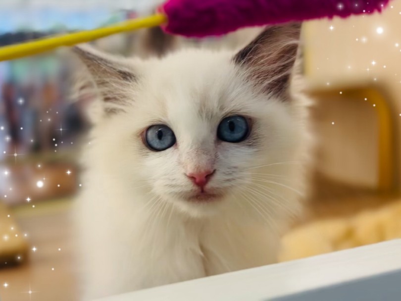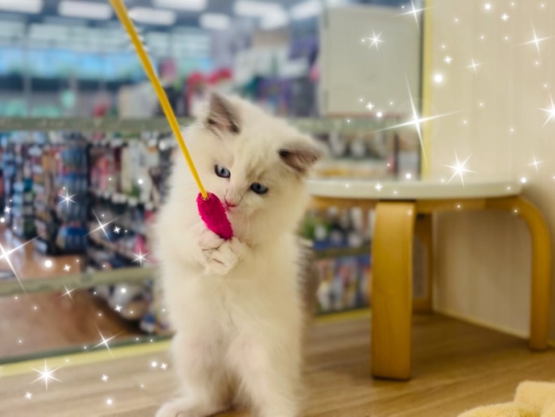 入店して間もないのにご飯もしっかり食べて、スタッフとも楽しく遊べる可愛いラグドール!
