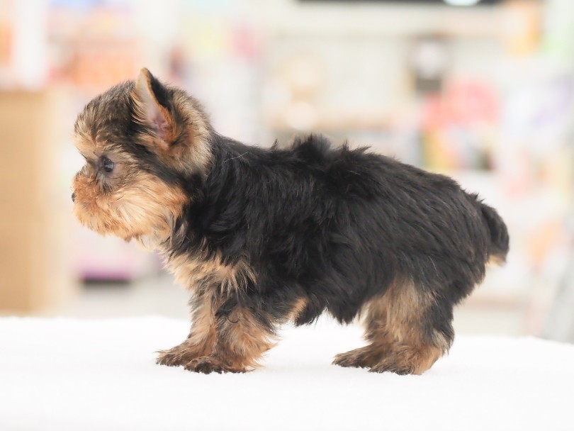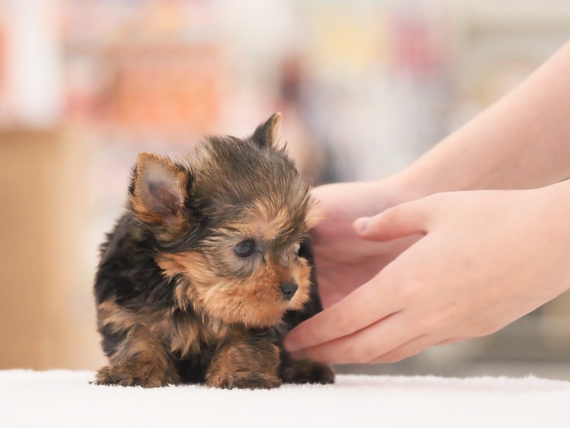 お店に来たばかりのヨーキーちゃんはまだ環境の変化に少しだけ戸惑っている様子。