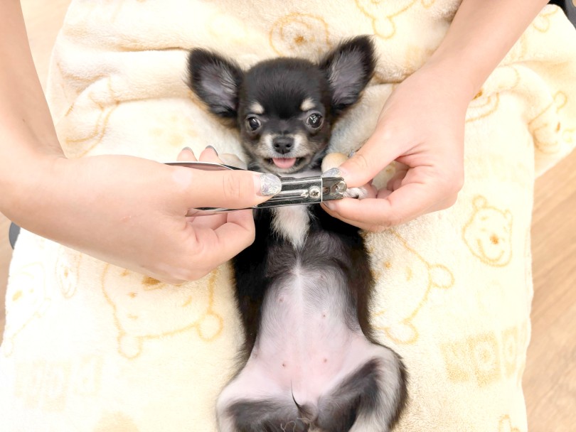 爪切りはちーちゃんは飼い主様が怪我をしないようにするためにもとっても大切なお手入れです。ちーちゃんは手足を触られても嫌がらず、とっても上手に爪切りさせてくれました!