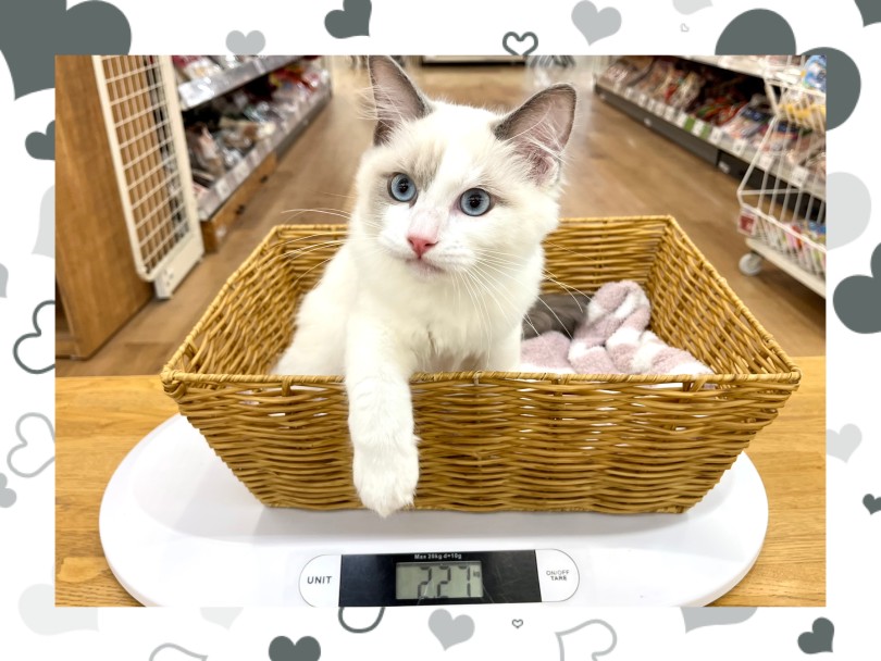 現在の体重は2.27kgでした。前回のブログ紹介時は980gだったので、約8週間で約1.3kg増えました!