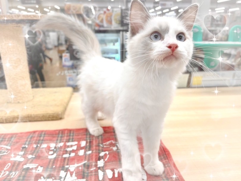 お顔だけでなく尻尾のポイントカラーも濃くなってきて可愛いです!気品溢れる優雅で美しいラグちゃんですが、毛並みはまだ子猫ちゃんらしくパヤッとした柔らかい毛です!