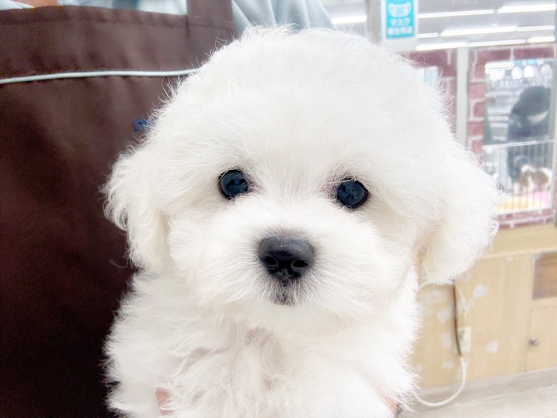 マルワン本羽田店に在籍するパパとママの体重が2kg台 という驚異的なサイズ感の両親から誕生したビションフリーゼの男の子。(通称ミニションちゃん)