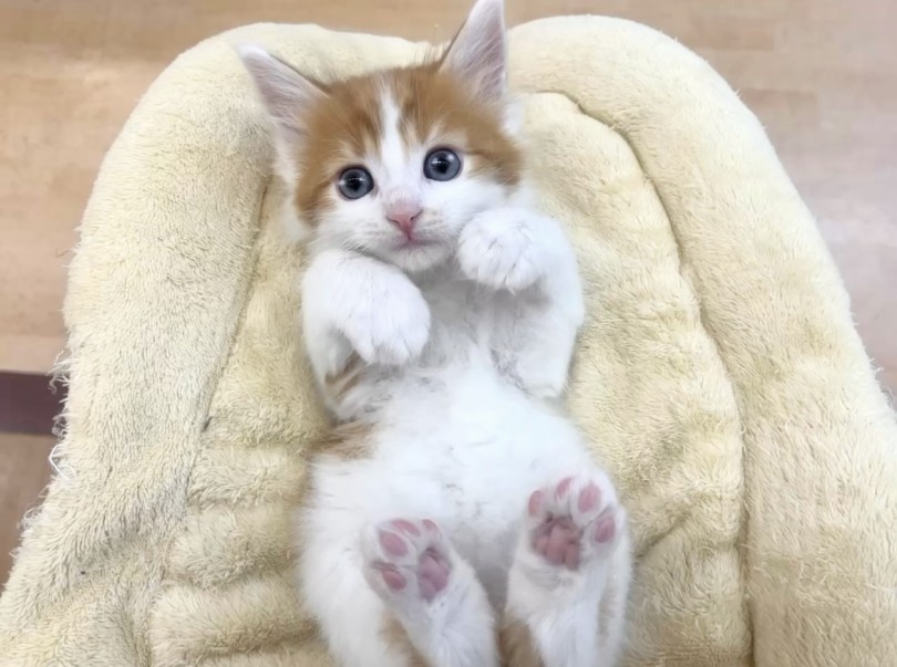 仰向け抱っこの際も弱点であるお腹を丸出し♪