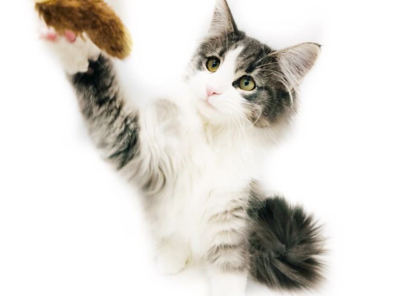 ノルちゃんはノルウェージャンフォレストキャット特有の長毛猫で、穏やかでありながら、遊ぶ時には活発に!
