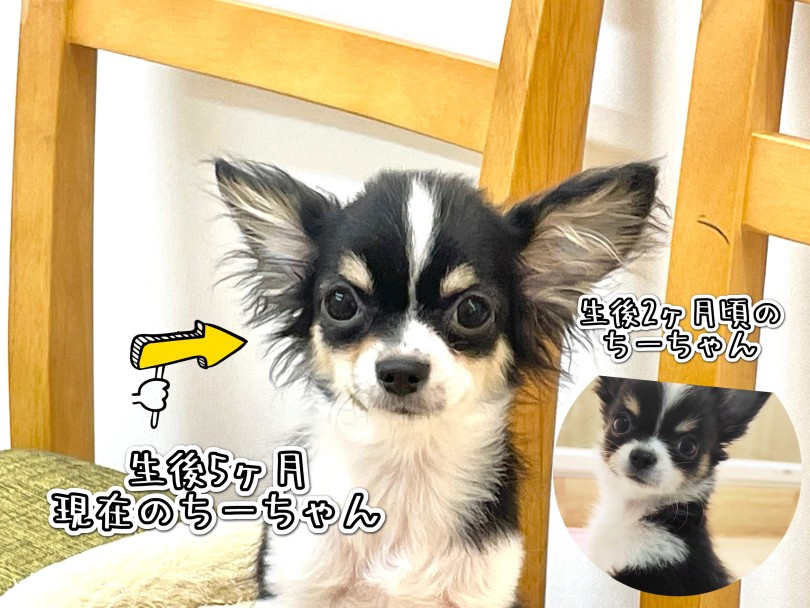 入店時、生後2ヶ月の頃のちーちゃんと見比べてみると一目瞭然。