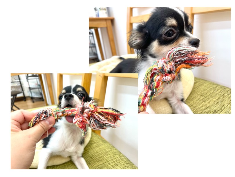 壊れて綿などがでないよう、ロープなどのおもちゃがオススメ!