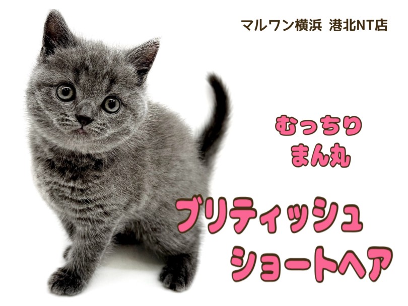 まぁるいお顔にむっちりした丸いボディと、ずんぐりしたフォルムがキュートなブリティッシュショートヘアの女の子が、マルワン横浜 港北NT店に仲間入りしました♪