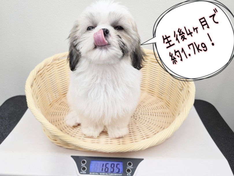 生後4ヵ月現在の体重は約1.7kg!同じ月齢のシーズが大体2~2.5kg位なのでしーちゃんはほんのり小さめサイズ。