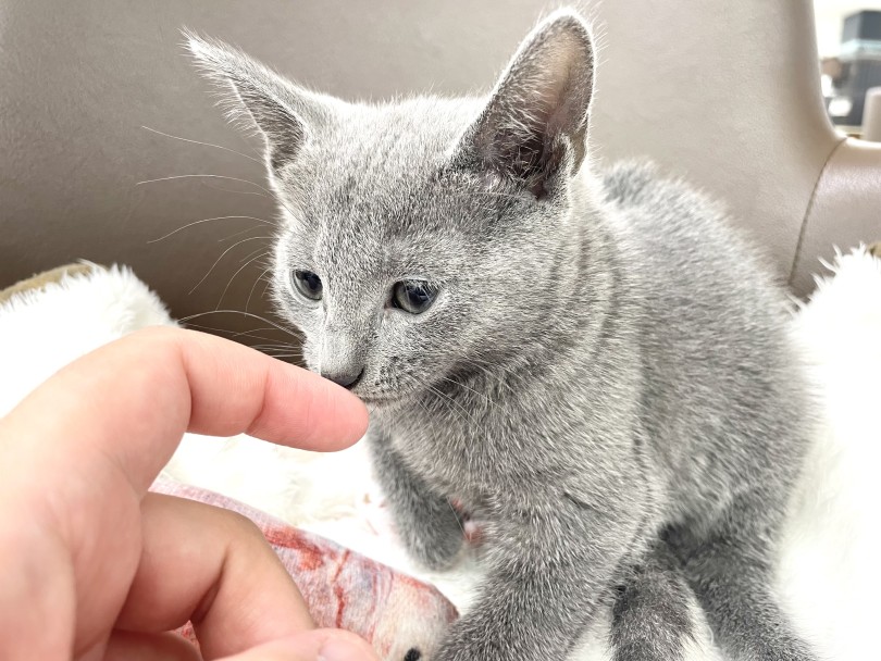 指のニオイを嗅いでもらう猫とのあいさつ方法もちゃんとしてくれました!